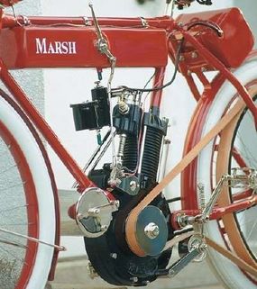 The 1904 Marsh motorcycle was built by the Marsh brothers, one of the first of the numerous motorcycle manufacturers dotting America's Eastern Coast in the industry's early days. Located in Brockton, Massachusetts, the Marsh brothers built a motorized bicycle in 1899, with regular production of motobikes commencing the following year.