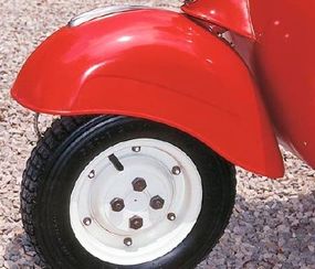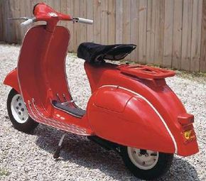 The 1964 Vespa Allstate pictured differs little from the Italian original, though the engine displaces 125 cc.