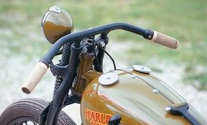 The fuel tank has been modified to carry gas only in the left half; the right half is just a cover that conceals the oil tank, battery, and ignition coil. Olive Drab paint that mimics the color used on Harleys from the late teens to the early 1930s gives the bike a period appearance-which is the whole idea.