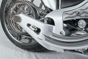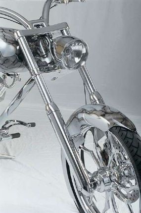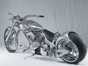 A fuel tank stretched to match the elongated frame is joined by formed fenders and oil tank to achieve a custom look, and they're all covered in silver paint accented with an exotic flame motif. The end result is a custom chopper that may well bring its two-time owner back for more.