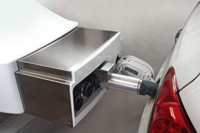 Now it's time for the gas to get in the tank. In the Fuelmatics system, two cameras locate the exact location of the fuel pipe. "In an early generation, we used a microwave transponder," said Corfitsen. "It was too difficult for the motorist to get the transponder in the right position." No kidding. We can't even back the car up without a camera and colored guidelines on a screen anymore. In any case, once the machine finds the fuel pipe, it puts a spout in and starts filling the tank, just like a human would, but with less mess, and without smoking a cigarette at the same time.