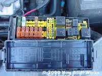 Most cars have two fuse panels. The one in the engine compartment holds the fuses for devices like the cooling fans, the anti-lock brake pump and the engine control unit -- all of which are located in the engine compartment. Another fuse panel, usually located in the dashboard near the driver's knees, holds fuses for the devices and switches located in the passenger compartment.